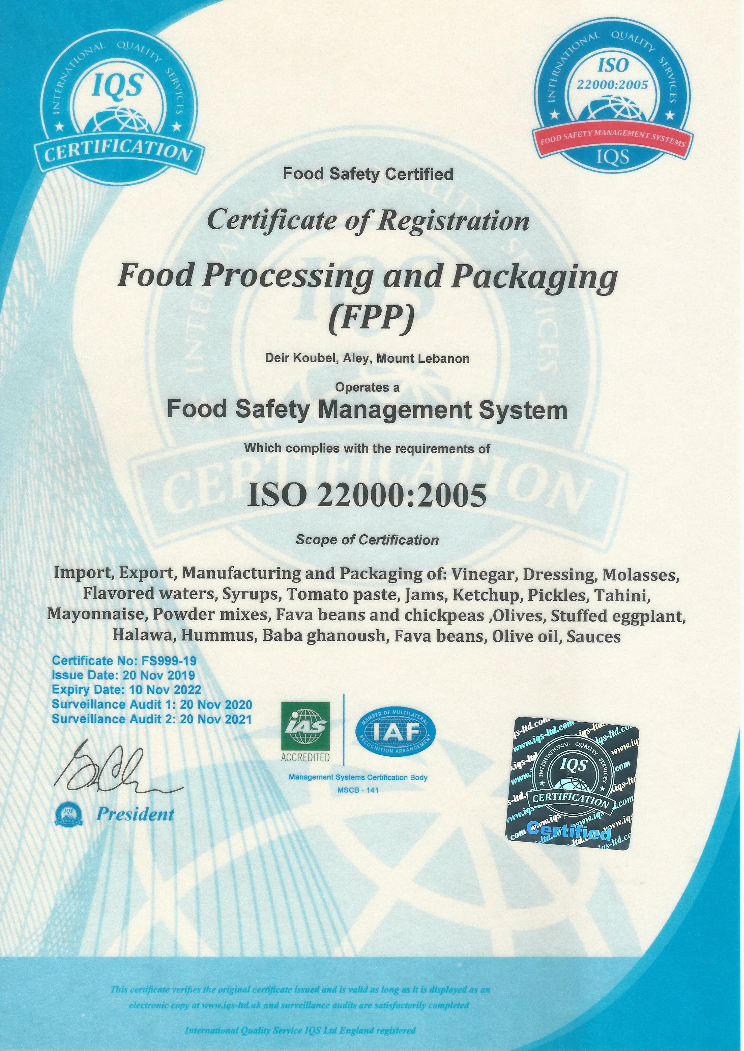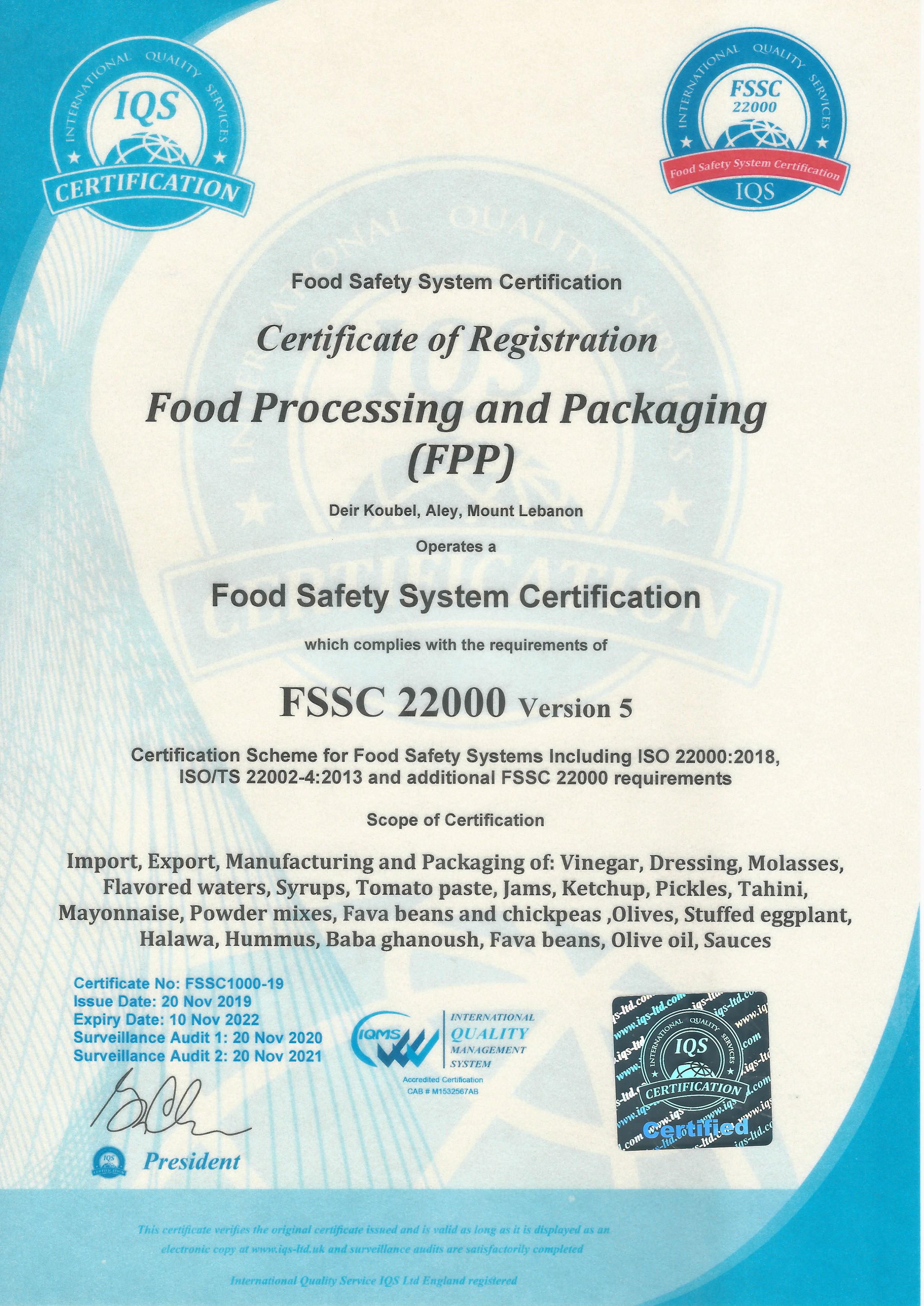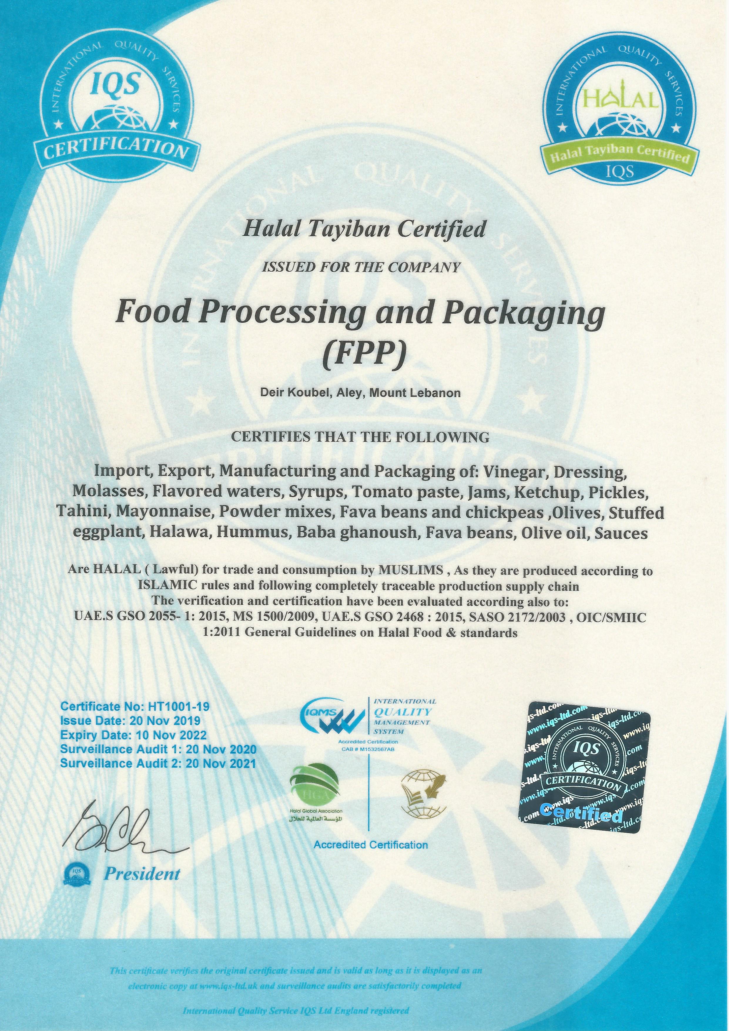 FPP (Food Processing and Packaging) has implemented the food safety management system and was certified with ISO 22000:2005 and FSSC 22000. On the other hand FPP is HALAL certified.
